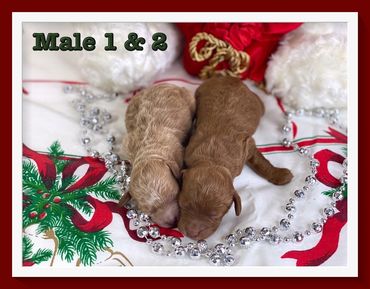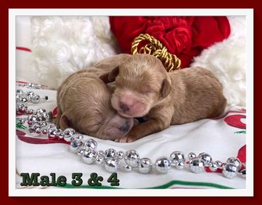 Mini-GoldenDoodle F1b Puppies available to loving homes. They were born on December 19th, and are ready to go on Saturday February 14th. The Mom "Hunni" is a Mini-GoldenDoodle F1, and the Dad "Preston" is a Red Toy Poodle. Mature weight should range from approx. 17-25 pounds once full grown, and approx. 12 inches at the shoulder when standing. They are 3/4 Toy Poodle and 1/4 Golden Retriever. They are extremely low to non-shedding and are very allergy friendly. They go home with a puppy starter package. They also come with a 2 year Health warranty, as well as a non- breeding contract. Pups will be Vet. checked, and have their first shot, and are dewormed at 2, 4 and 6 weeks of age. Their puppies are $2000. each plus GST which comes to $2100. We currently have 3 Males available. We won't know which specific Males until the picking day on Saturday February 14th.