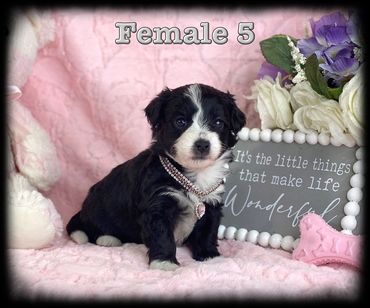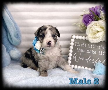 Mini-AussieDoodle puppies available to loving homes. The Mom Jewel is an Australian Shepherd, and was bred to our White Toy Poodle Yoshi, making her puppies Mini-AussieDoodles, that will likely mature to approx. 15-20 pounds, and about 12-14 inches at the shoulder when standing. They were born on September 18th and will be 8 weeks old and ready to go on Friday November 14th.