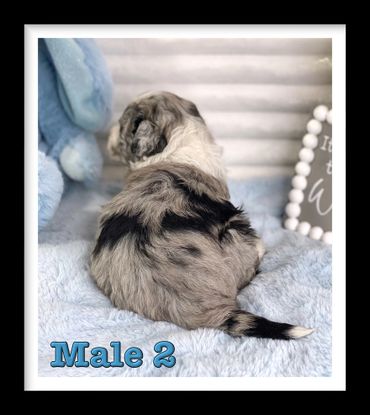 They go home with a puppy starter package. They also come with a 2 year Health warranty, as well as a non- breeding contract. Pups will be Vet. checked, and have their first shot, and are dewormed at 2, 4 and 6 weeks of age. We currently have 3 Females and 4 Males available. In the First 2 Females pics both Merle Females are now reserved. In the First 2 Merle Males Pics the larger Merle Male on the left is now reserved. We are now taking deposits. Their puppies are $1500. for the Black & White Pups, plus GST which comes to $1575., and $1800. for the Merle pups, plus GST which comes to $1890.