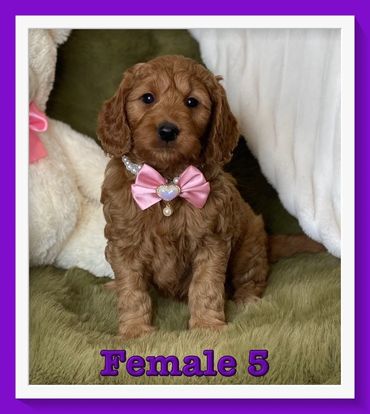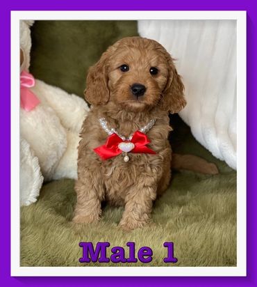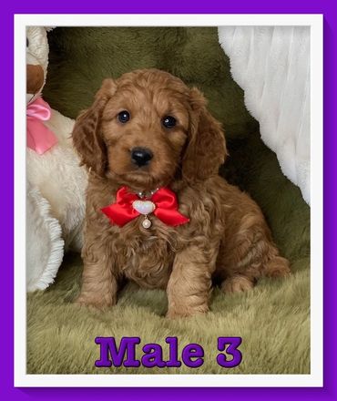 Mini-GoldenDoodle F1 Puppies available to loving homes. They were born on September 20th, and are ready to go on Saturday November 15th. The Mom "Popsy" is a Golden Retriever, and the Dad "Murphy" is a Red Moyen Poodle. Mature weight should range from approx. 30-40 pounds once full grown, and approx. 17 inches at the shoulder when standing. They are 1/2 Moyen Poodle and 1/2 Golden Retriever. They should be low to non-shedding and are allergy friendly. They go home with a puppy starter package. They also come with a 2 year Health warranty, as well as a non- breeding contract. Pups will be Vet. checked, and have their first shot, and are dewormed at 2, 4 and 6 weeks of age. We currently have 3 Females and 2 Males available. We are now taking deposits. Their puppies are $1800. each plus GST which comes to $1890.